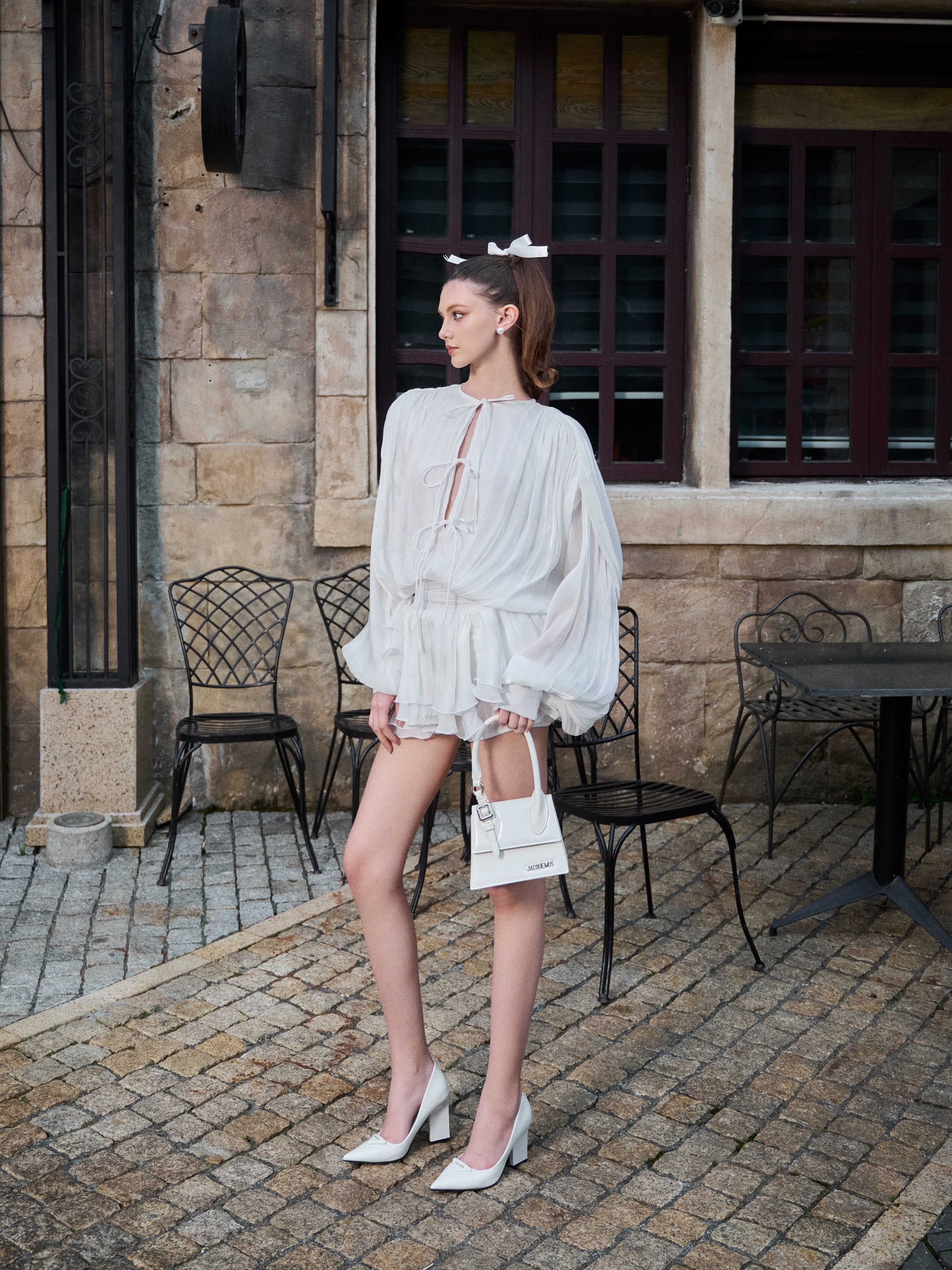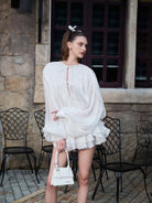 - Flowy Long Sleeve Top with Raised Bow Detail