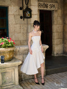 Dress length measured from the chest line, asymmetric skirt (one side short, one side long)