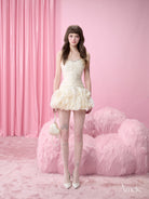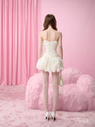 - Dress with spaghetti straps, gathered skirt, and a fitted silhouette